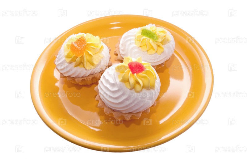 Сладкие пирожные на желтой тарелке
