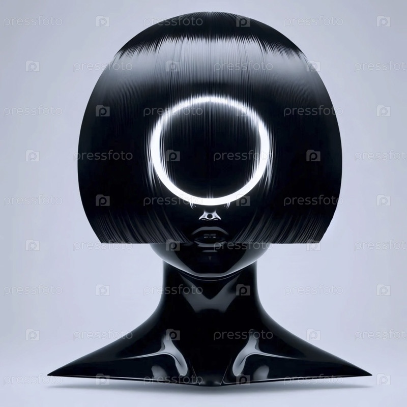 Глянцевый черный геометрический шлем для волос, отражающий идеальный кольцевой флеш-круг, Ai generated image