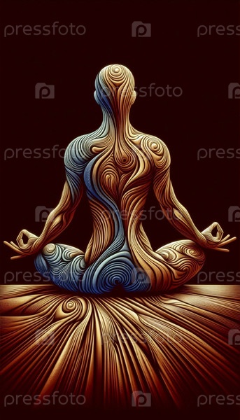 Абстрактная геометрическая композиция йоги с человеческим силуэтом, растворяющаяся в терракотно-синих и золотых тесселяциях, Ai generated image