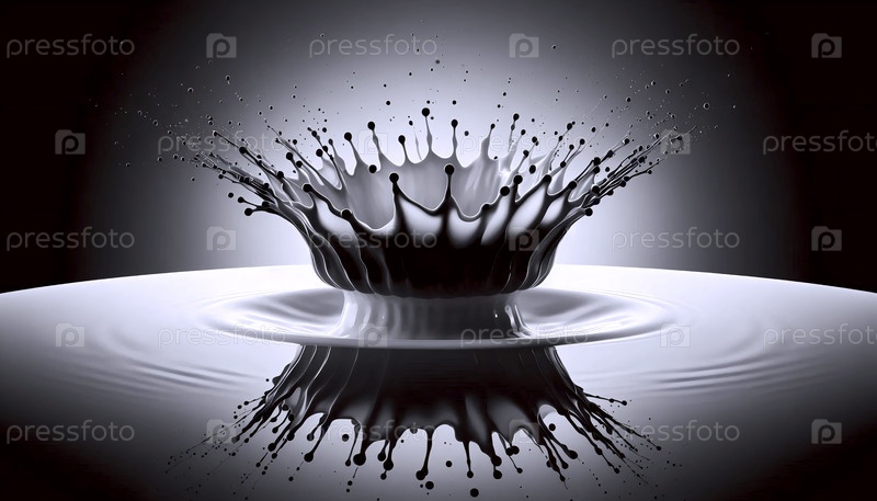 Капля чернил, падающая в бассейн молока, момент удара создает идеальную кристаллическую корону