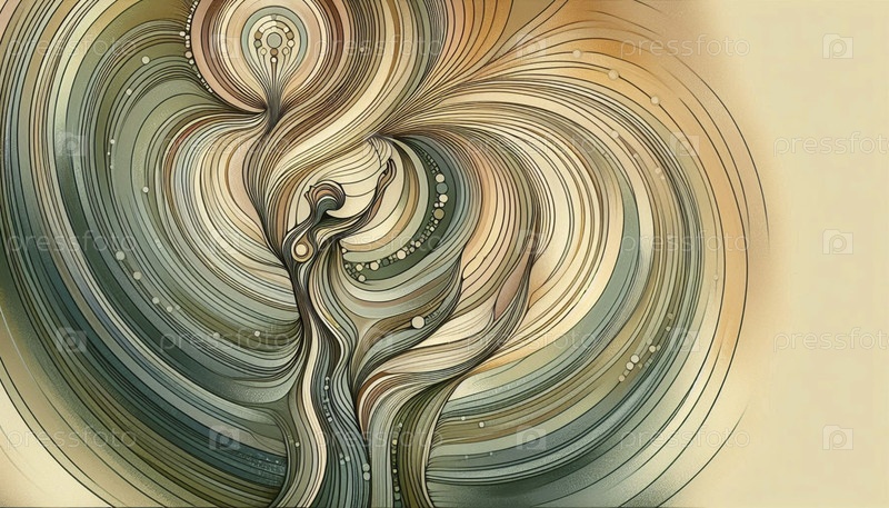 Абстрактная геометрическая композиция йоги из деревянной позы с органически текучими линиями, сливающимися в круговые медитативные узоры, Ai generated image