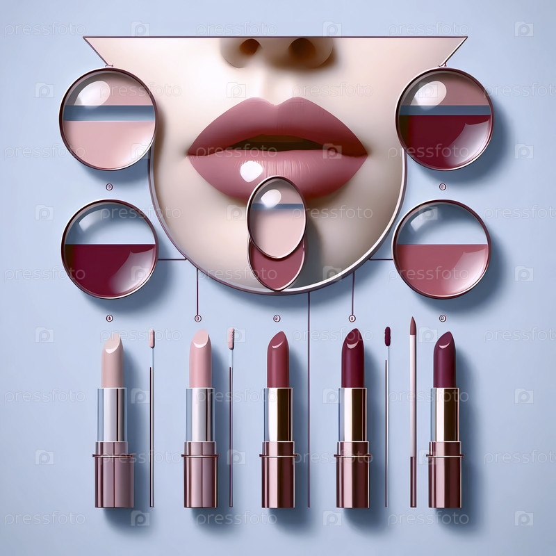 Научная шкала интенсивности помады с вырезами из увеличительного стекла, Ai generated image