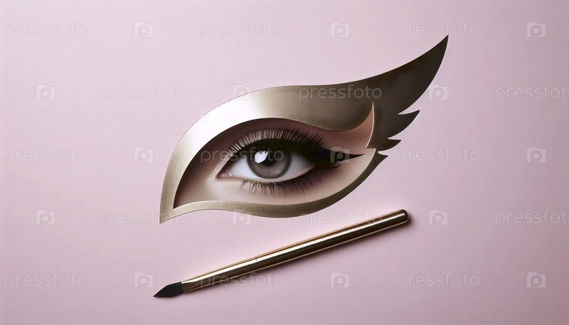Золотая штенцель с кошачьими глазами и круглое окно, показывающее идеальный результат макияжа глаз, Ai generated image