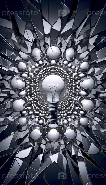 Капля ртути на разбитом зеркале, создавая множество разрозненных отражений одной лампочки, Ai генерирует изображение