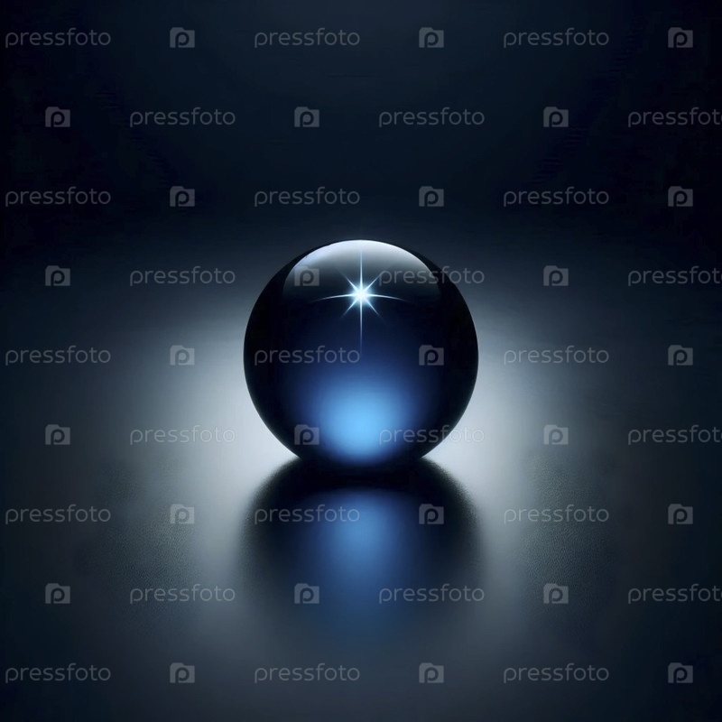 Капля сапфирово-синего масла на черном полированном мраморе, отражающая один яркий студийный свет как белая звезда, Ai создала изображение