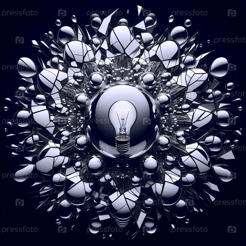Капля ртути на разбитом зеркале, создавая множество разрозненных отражений одной лампочки, Ai генерирует изображение