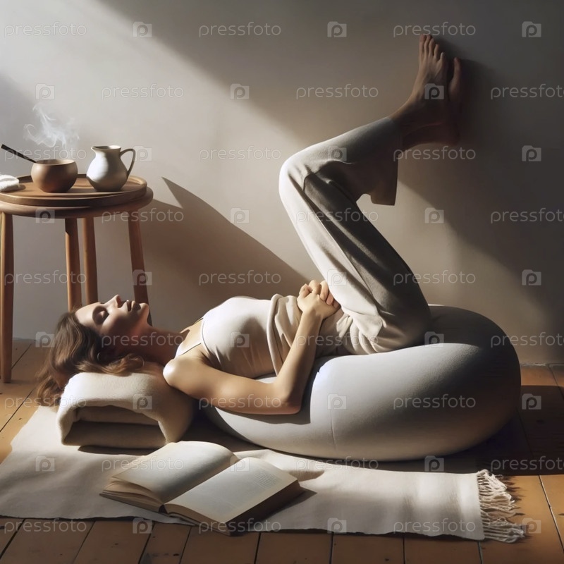 Профессионал легкого оздоровления в позе с подкрепленными ногами над стеной в скобках в тихом уголке спальни, Ai generated image