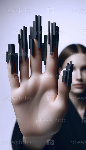 Рука с архитектурными черными смоловыми ногтями в резком жесте остановки, ближайший снимок, Ai generated image