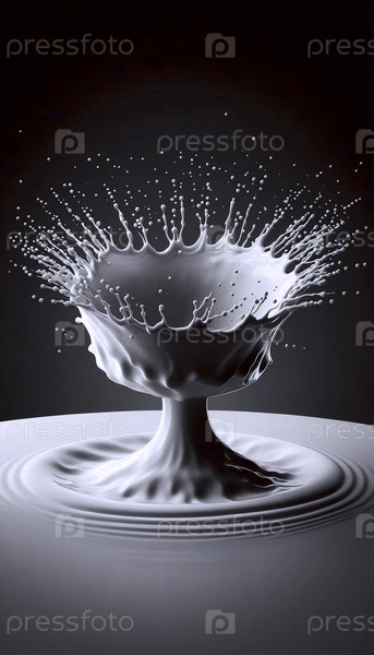 Капля чернил, падающая в бассейн молока, момент удара создает идеальную кристаллическую корону