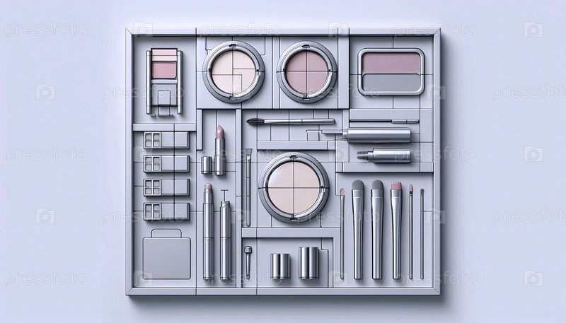 Реклама модульной системы макияжа, показывающая взаимозаменяемые компоненты в сетевом макете, Ai generated image