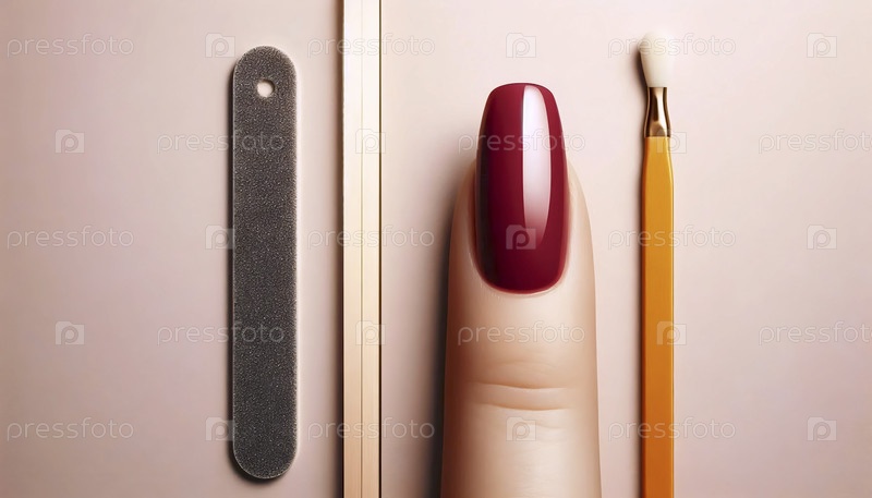 Реклама маникюра на разделенном экране: инструменты против результата, отделены золотым слитком, Ai generated image