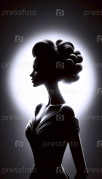 Силуэт женщины в изысканном вечернем платье и украшения на ярко-белом фоне студии, Ай создал образ