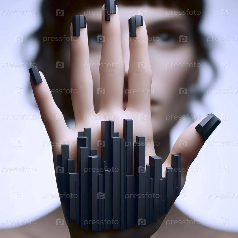 Рука с архитектурными черными смоловыми ногтями в резком жесте остановки, ближайший снимок, Ai generated image