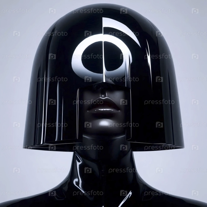 Глянцевый черный геометрический шлем для волос, отражающий идеальный кольцевой флеш-круг, Ai generated image