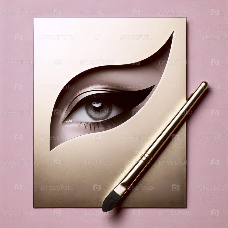 Золотая штенцель с кошачьими глазами и круглое окно, показывающее идеальный результат макияжа глаз, Ai generated image