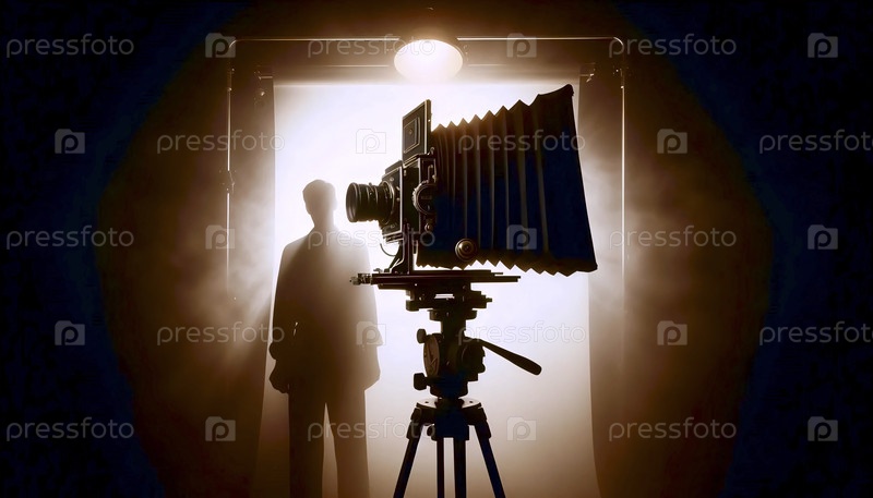 Автопортрет фотографа, видимый только как силуэт позади большой форматной камеры на штативе, Ай создал изображение