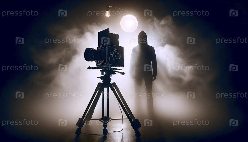 Автопортрет фотографа, видимый только как силуэт позади большой форматной камеры на штативе, Ай создал изображение