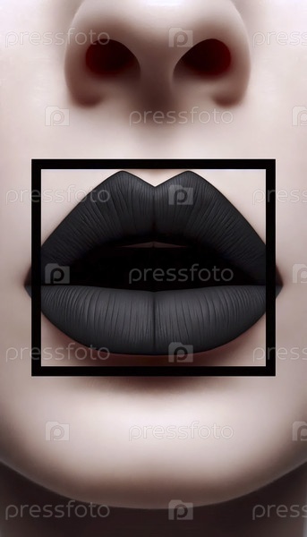 Экстремальный крупный план гипергеометрических черных губ с резкими расширенными углами, Ai generated image