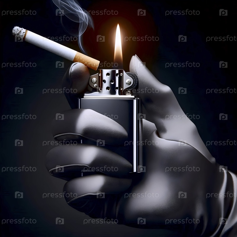 Женская рука в атласных перчатках, держащая зажигалку, собирается зажечь сигарету, Ai generated image