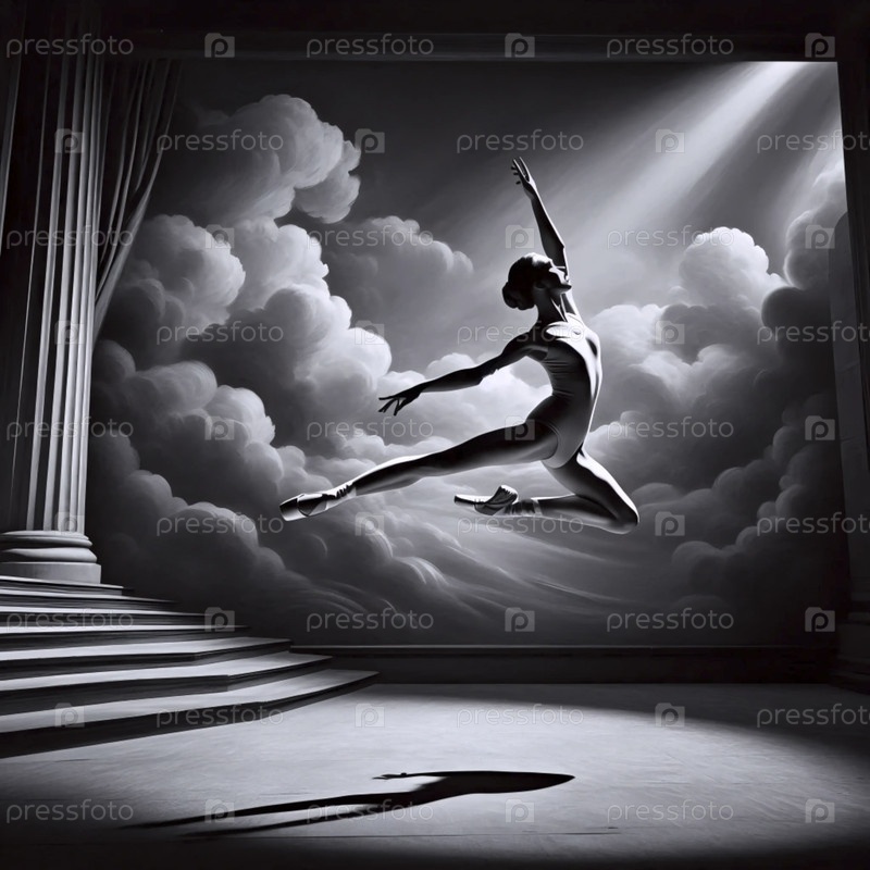 Танцовщица, застывшая в середине прыжка, захваченная вспышкой молнии на окрашенном облачном фоне, Ай создала изображение