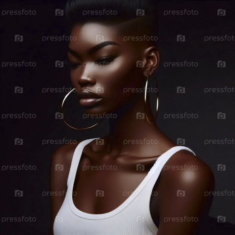 Современный певец с бледной стрижкой и обручальными серьгами, в простом танковом топе, освещение в стиле Hurrell, Ai generated image