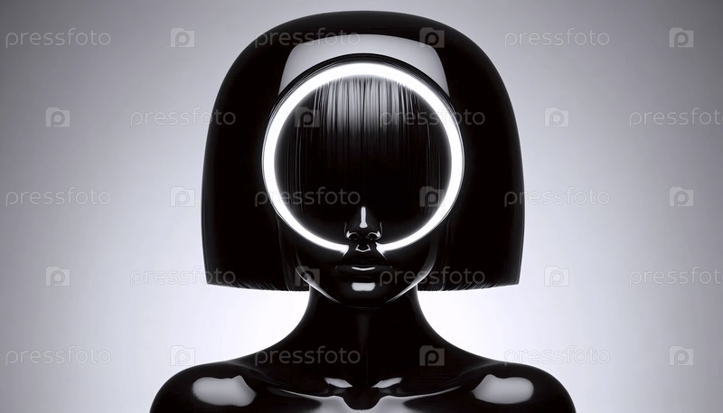 Глянцевый черный геометрический шлем для волос, отражающий идеальный кольцевой флеш-круг, Ai generated image