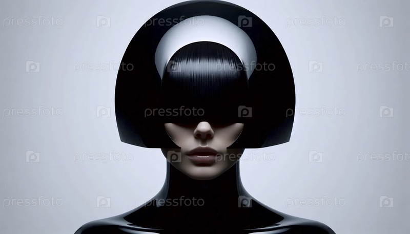 Глянцевый черный геометрический шлем для волос, отражающий идеальный кольцевой флеш-круг, Ai generated image