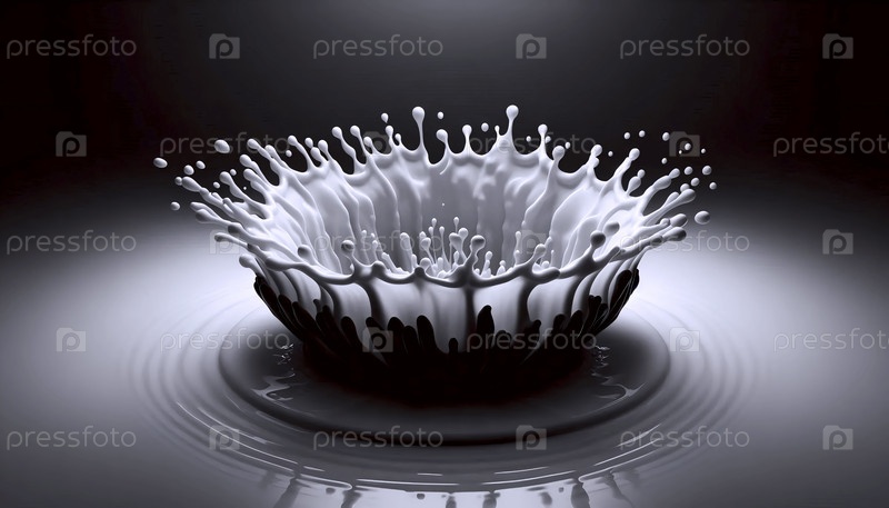 Капля чернил, падающая в бассейн молока, момент удара создает идеальную кристаллическую корону