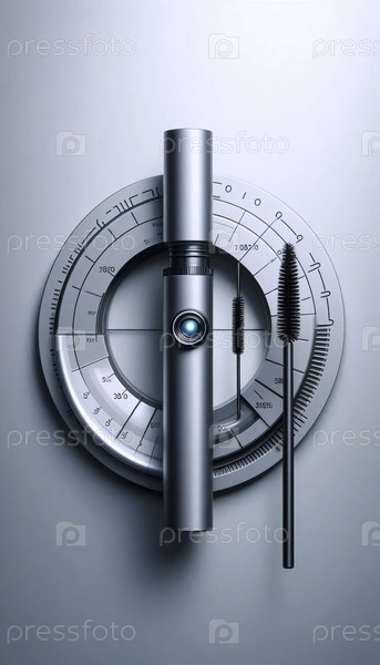 Маскированная труба с циферблатами и круглое окно, показывающее до/после завивки ресниц, Ai generated image