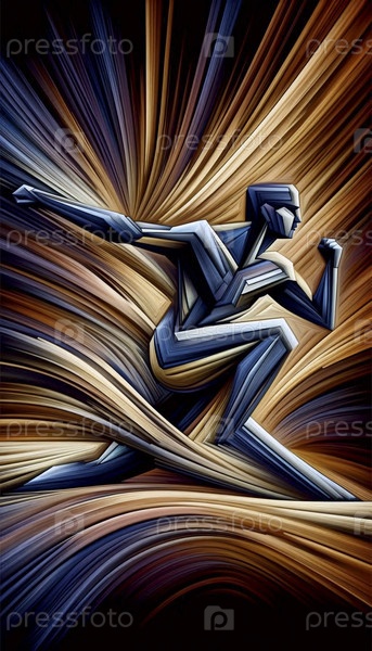 Абстрактная геометрическая композиция йоги из позы воина, преобразованной в острые угловые линии и текучие цветовые поля, Ai generated image