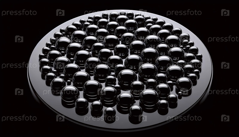 Микроскопическая сетка идеальных капель воды на стеклянном черном ногте, Ai generated image