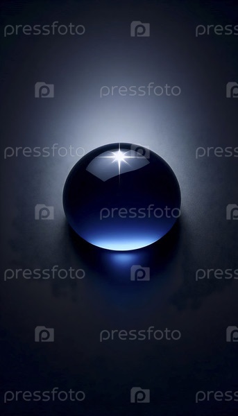 Капля сапфирово-синего масла на черном полированном мраморе, отражающая один яркий студийный свет как белая звезда, Ai создала изображение