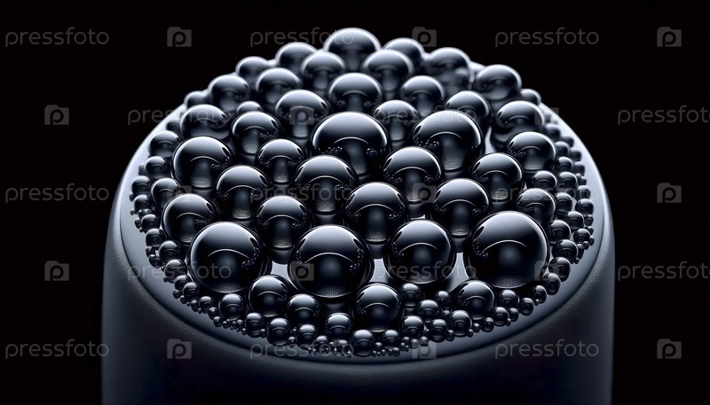 Микроскопическая сетка идеальных капель воды на стеклянном черном ногте, Ai generated image