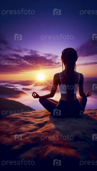 Практикующий йогу в медитативной позе на краю скалы при восходе солнца, Ai generated image