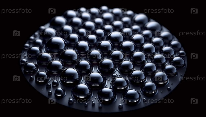 Микроскопическая сетка идеальных капель воды на стеклянном черном ногте, Ai generated image
