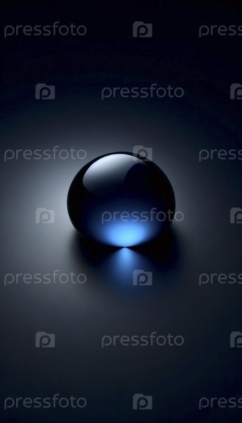 Капля сапфирово-синего масла на черном полированном мраморе, отражающая один яркий студийный свет как белая звезда, Ai создала изображение