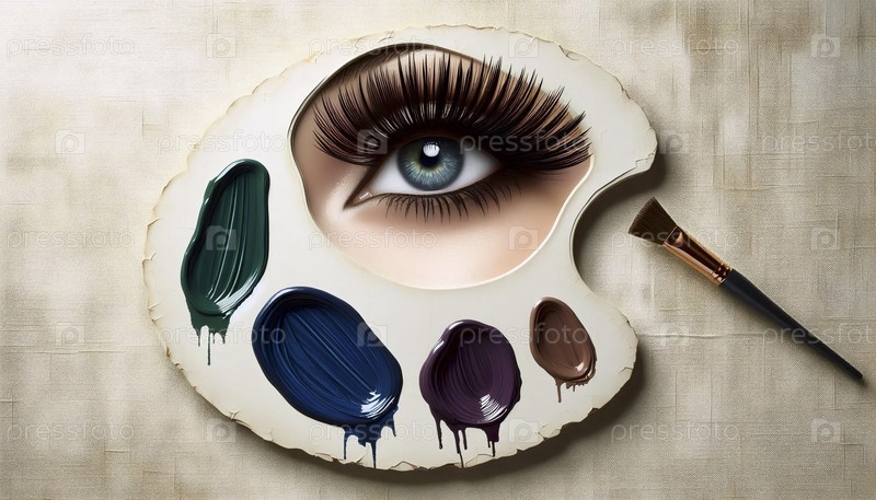 Реклама на палитре художников для цветовой маски с овалом Угадайте тень глазного окна, Ai generated image
