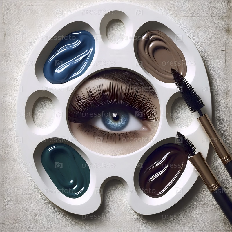 Реклама на палитре художников для цветовой маски с овалом Угадайте тень глазного окна, Ai generated image