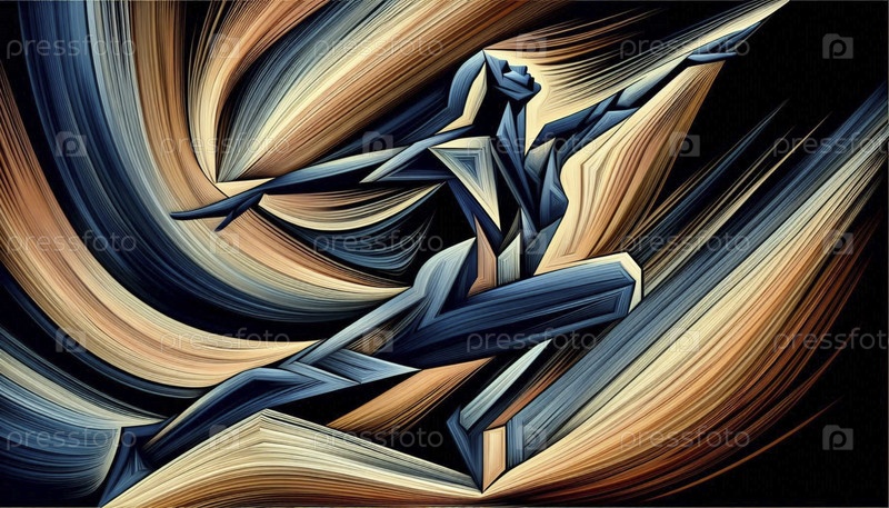 Абстрактная геометрическая композиция йоги из позы воина, преобразованной в острые угловые линии и текучие цветовые поля, Ai generated image