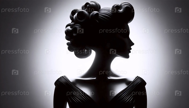 Силуэт женщины в изысканном вечернем платье и украшения на ярко-белом фоне студии, Ай создал образ