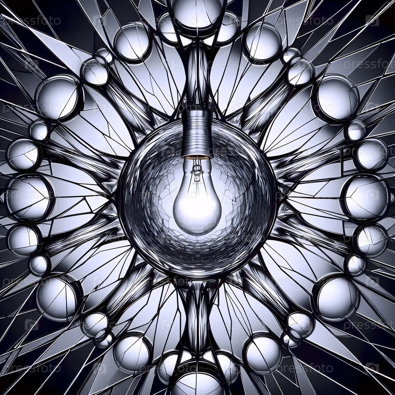 Капля ртути на разбитом зеркале, создавая множество разрозненных отражений одной лампочки, Ai генерирует изображение
