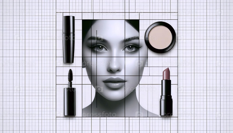 Плоская полоса головоломки лица: косметические изделия рядом с круглыми вырезками их применения, Ai generated image