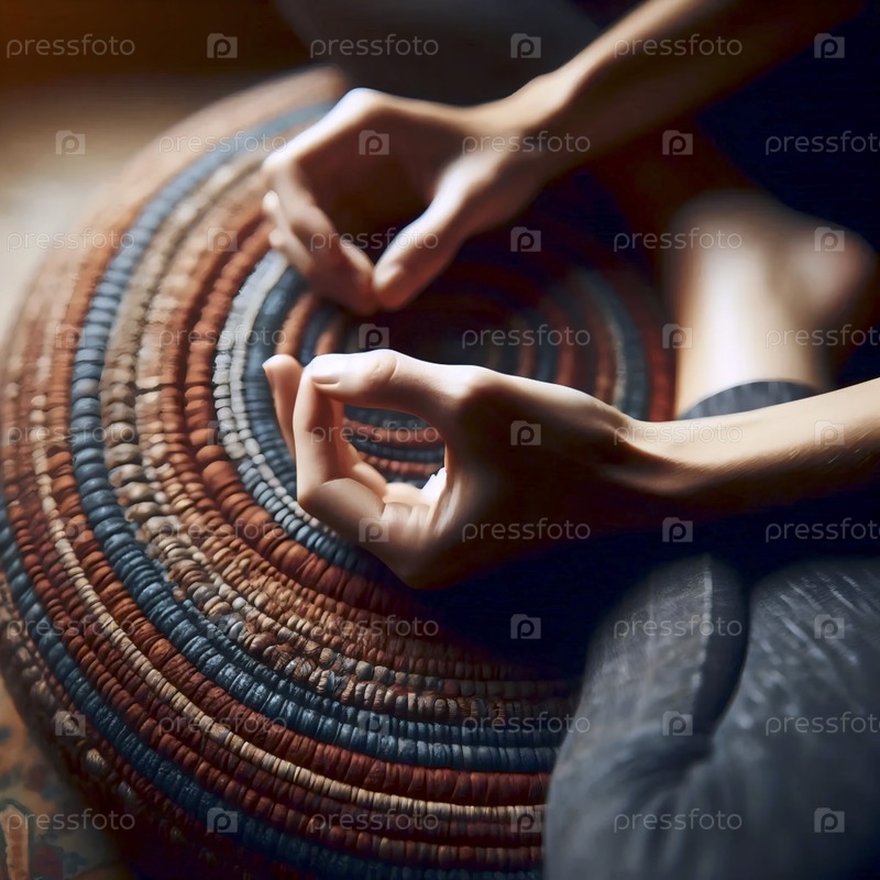 Ближайший план рук в Gyan Mudra на текстурированной медитационной подушке, Ai generated image