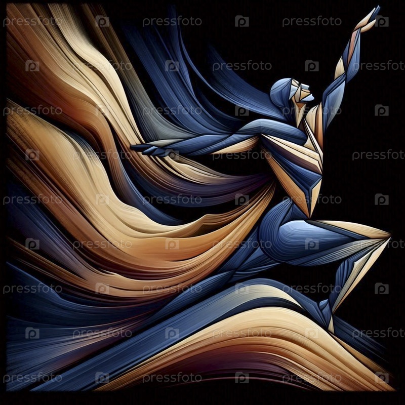 Абстрактная геометрическая композиция йоги из позы воина, преобразованной в острые угловые линии и текучие цветовые поля, Ai generated image