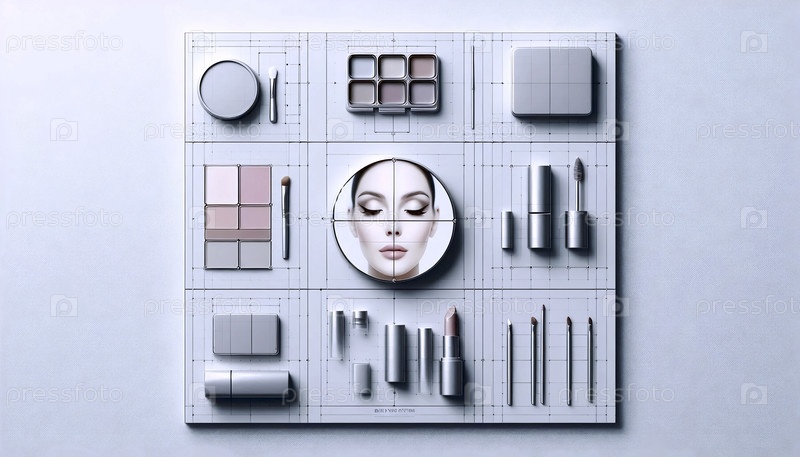 Реклама модульной системы макияжа, показывающая взаимозаменяемые компоненты в сетевом макете, Ai generated image