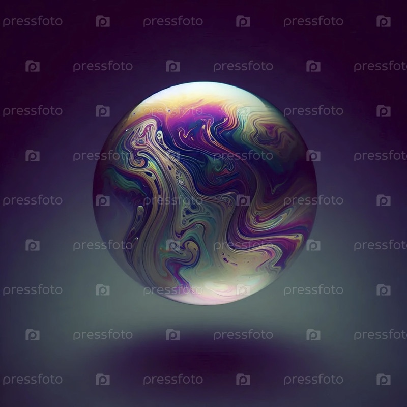 Одна капля ртути-серебра на чистой голубой стальной поверхности, отражающей искаженный неоновый знак, Ai создала изображение