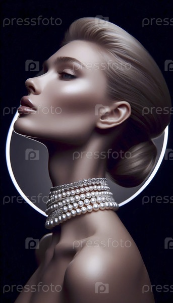 Шейка модели украшена тройной нитью из жемчуга, отвратительный взгляд, Ай создал образ