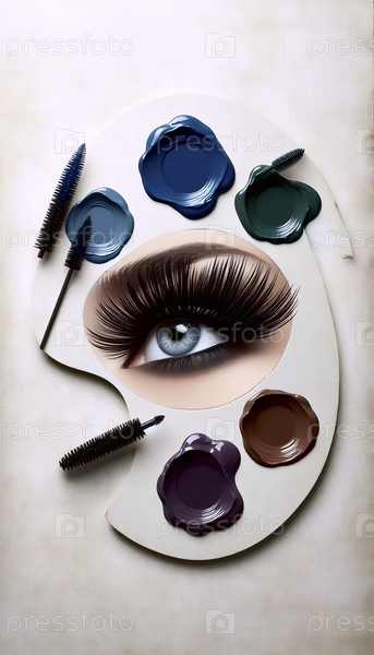 Реклама на палитре художников для цветовой маски с овалом Угадайте тень глазного окна, Ai generated image
