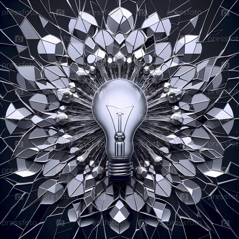 Капля ртути на разбитом зеркале, создавая множество разрозненных отражений одной лампочки, Ai генерирует изображение