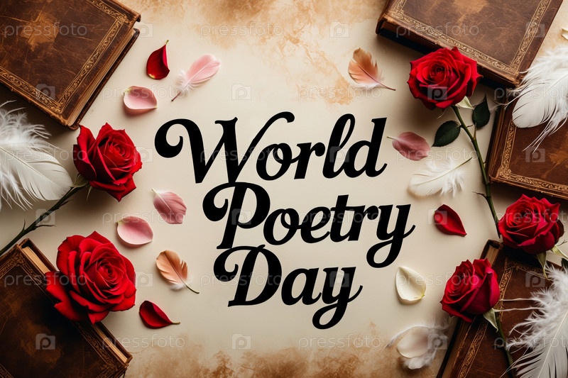 Поздравительная открытка к международному празднику Всемирный день поэзии с чернилами и ручкой AI Generative